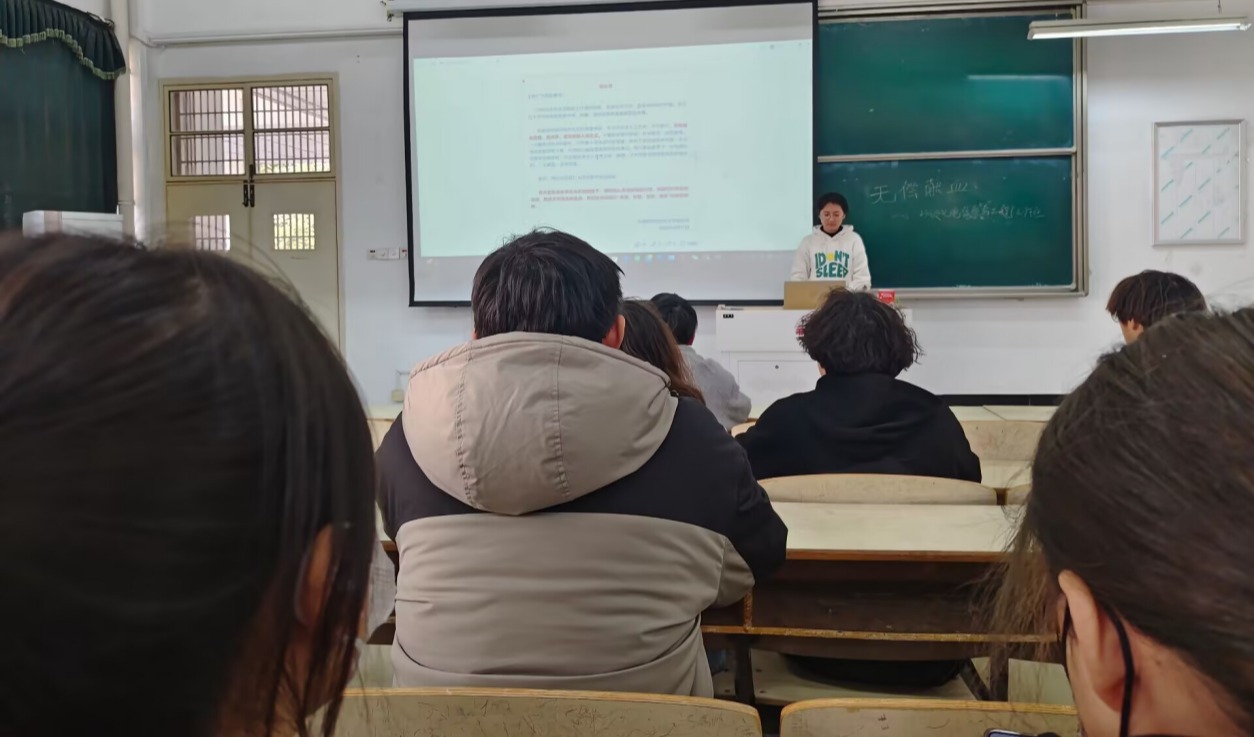 2024级电子信息5、6班共同开展“加入无偿献血,让人间不缺‘生命零件’”的活动,主持人周妍宣读倡议书,向大家介绍献血活动时间和地点安排,随后强调了献血过程中的注意事项,例如献血前的饮食、心态方面以及献血后的身体恢复等。周妍表示:“积极参与献血活动是件共荣且温暖的事,但也希望献血者保护好自己的身体,在这过程中避免受伤,科学献血。”