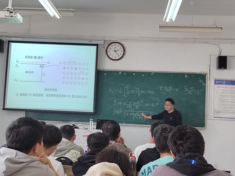 11月18日,光电信息教研室在B406开展了期中教学观摩活动,本次观摩课主题为《半导体物理学》课程中的“简并半导体”,由吴义恒副教授主讲,随堂进行,教研室全体教师参加。
