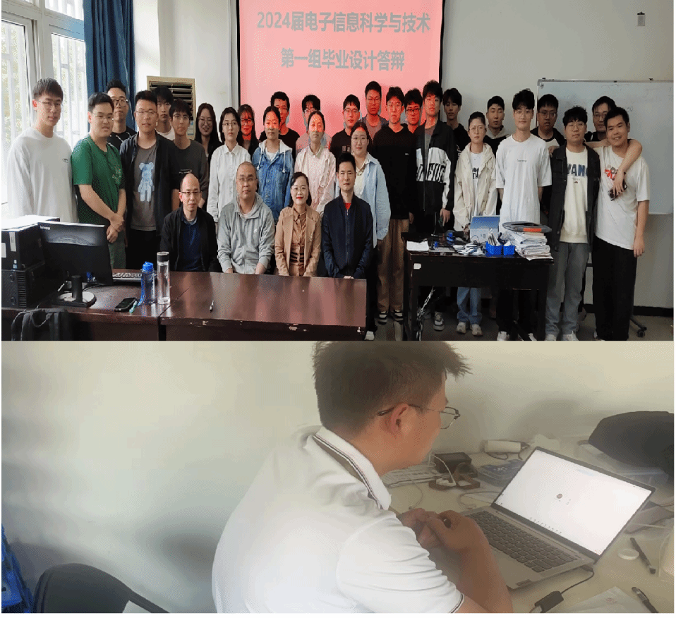 5月6日,电子信息科学与技术专业2024届毕业设计答辩工作在稼先楼实验室举行。电子信息2024届毕业设计指导教师、南京信盈达科技有限公司高级工程师叶剑平和电信专业2024届部分毕业员工参加了答辩会,答辩会由电子信息教研室主任主持。本次答辩以线上线下结合的方式进行。