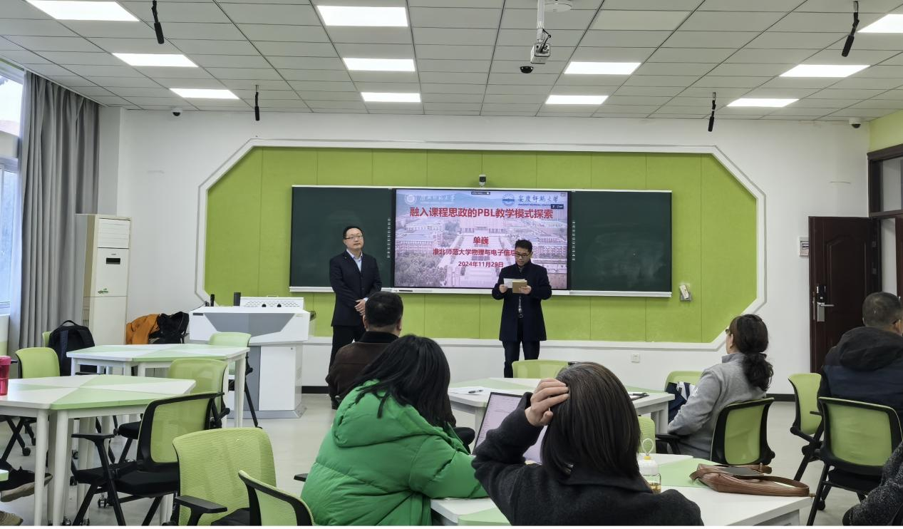 11月29日,太阳成集团122ccvip在教学楼智慧教室D204举办教师教学能力提升培训活动。淮北师范大学物理与电子信息公司单巍副教授应邀开展以“融入课程思政的PBL教学模式”为主题的专题培训,公司近年来引进的40余位专任教师参加了本次培训,活动由副经理章礼华主持。