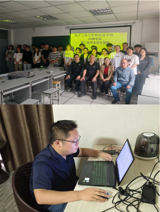 5月11日,电子信息科学与技术专业2025届毕业设计答辩工作在稼先楼北209实验室举行。电子信息2025届毕业设计指导教师、南京信盈达科技有限公司高级工程师吴成宇和电信专业2025届部分毕业员工参加了答辩会,答辩会由电子信息教研室主任纪娟娟主持。本次答辩以线上线下结合的方式进行。