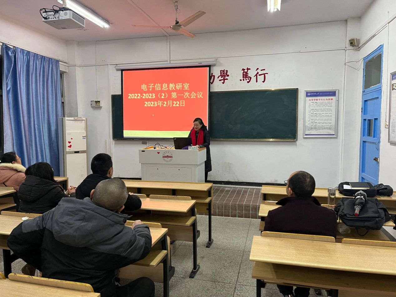 2月22日,电子信息教研室在老校区教学楼307教室,召开了2022-2023第二学期新学期第一次教学工作会议。会议由教研室主任纪娟娟主持。
