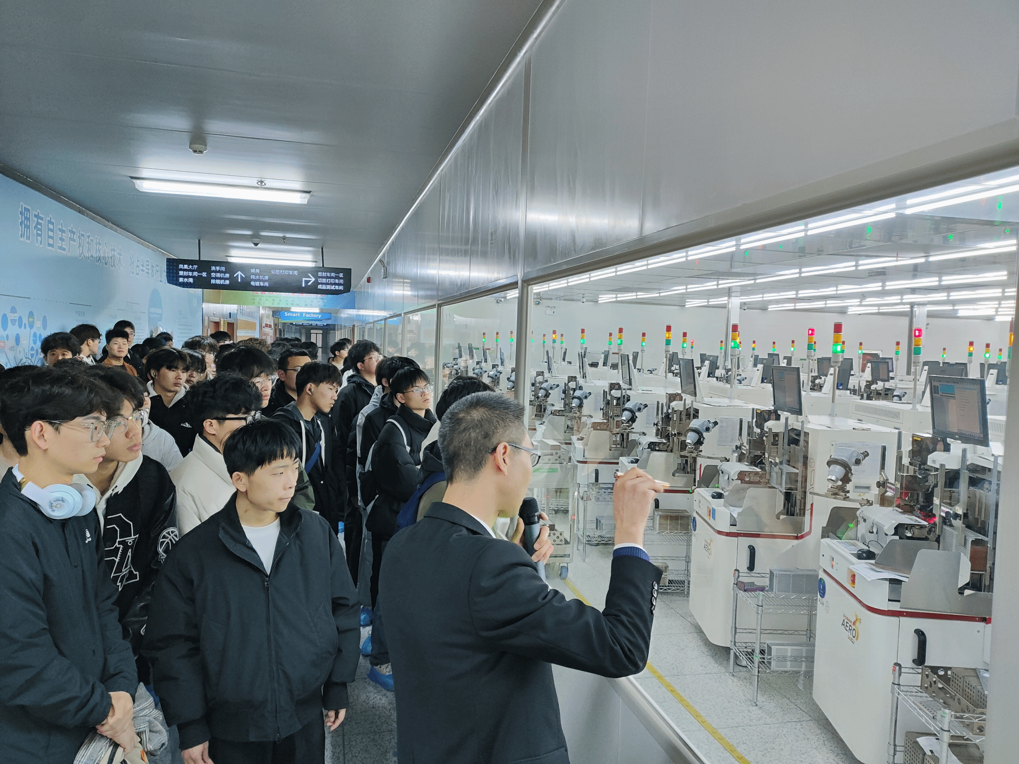3月12日,公司2023级微电子科学与工程专业100余名同学赴池州华宇电子科技股份有限太阳成集团122ccvip开展见习活动。华宇电子人力资源部经理薛东红带领同学们深入生产车间,实地参观了集成电路封装与测试全流程产线。