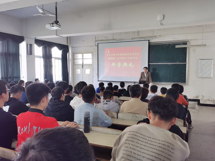开学典礼上,分党校培训班班主任操龙德同志宣读了本期培训班教学安排和培训班学规。2019级通信工程专业俞周熠同学作为学员代表进行了表态发言。