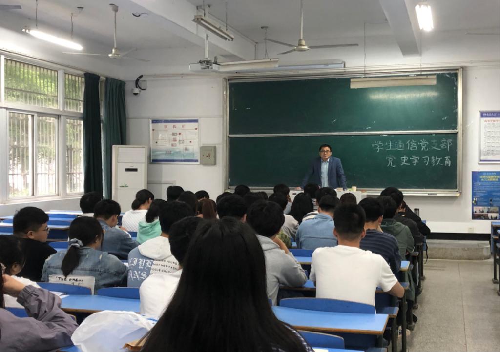 为喜迎中国共产党成立100周年,扎实开展党史学习教育,引领大家学党史、强信念、跟党走,重温党的光辉历史,汲取奋进力量。2021年5月19日,员工通信党支部在文朔楼104教室开展了党史学习教育主题宣讲活动,传承红色基因,补足精神之钙。通信工程全体党员一起聆听了这次主题宣讲。
