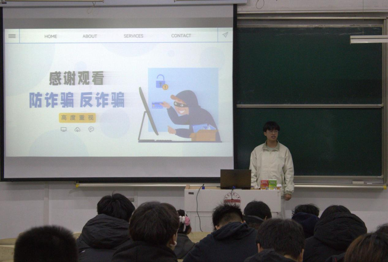 聚焦常见骗局,敲响安全警钟。宣讲通过剖析老员工群体中高发诈骗类型,揭露犯罪分子的惯用手段,如冒充熟人诈骗、网络兼职诈骗、校园贷诈骗等等。同时对这些诈骗提出了应对措施,提醒同学们不贪小便宜,警惕不明链接,要保护好个人信息,在涉及转账贷款时要确认对方身份,被诈骗后保持冷静,及时向老师和警方求助。