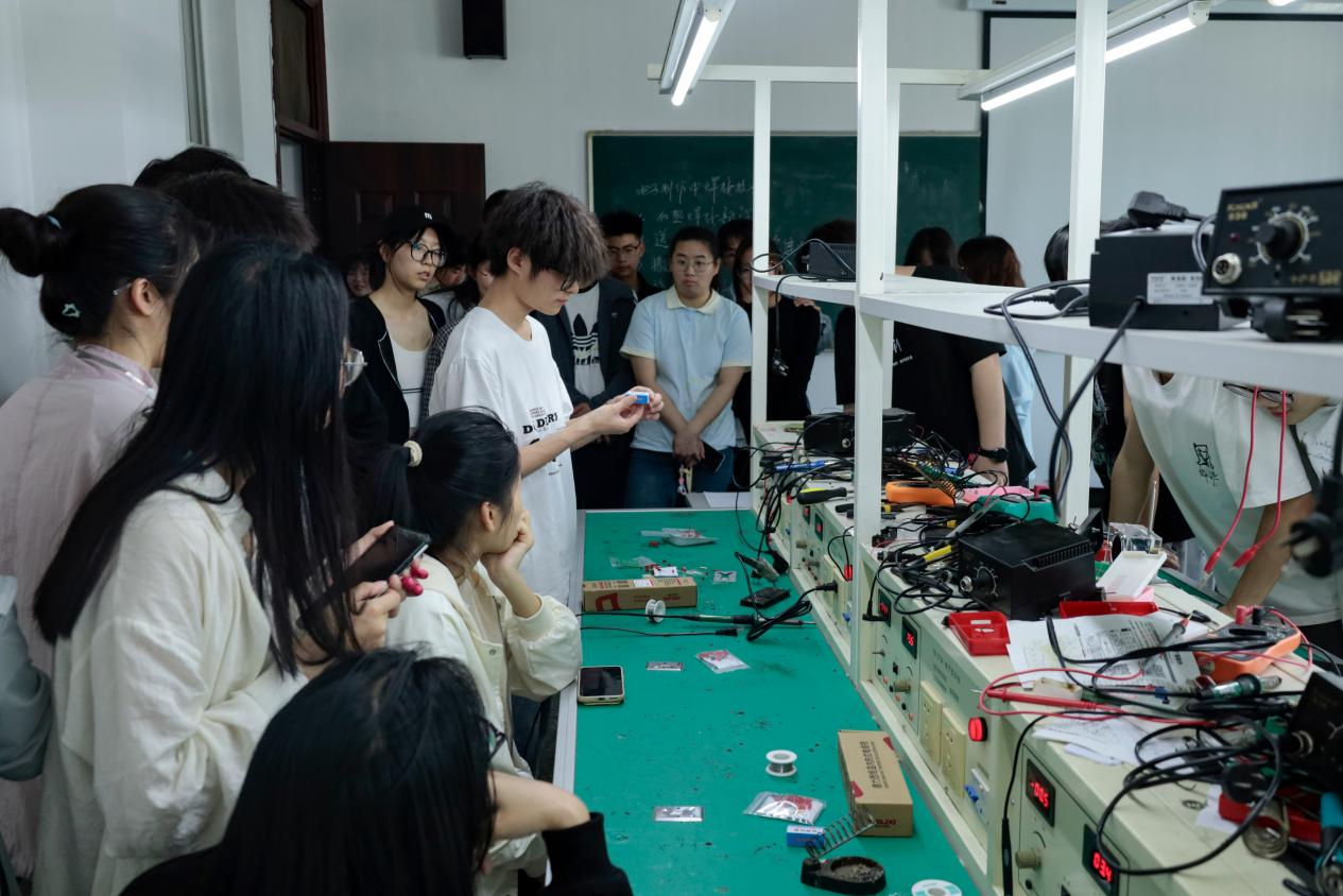5月14日,公司在稼先楼南406教室开展“光热造心·释放想象”心理健康主题活动,以创意电焊绘画为桥梁,实现专业实践与心理疏导的深度融合。活动现场,电路板与焊枪成为同学们表达内心世界的独特媒介。大家运用焊接电路的专业手法,或排列焊点成象征秩序的几何图案,传递内心对稳定的渴望;或突破常规,让焊锡线条自由延展,释放心中奔涌的情绪。烙铁与金属接触的声响与讨论声交织,形成独特的“创作交响乐”。同学们在解决焊点粘连等技术难题的过程中,焦虑悄然转化为专注。当融合专业技巧与艺术创意的作品诞生,火花飞溅的瞬间不仅点亮了电路板,更点燃了创作热情。