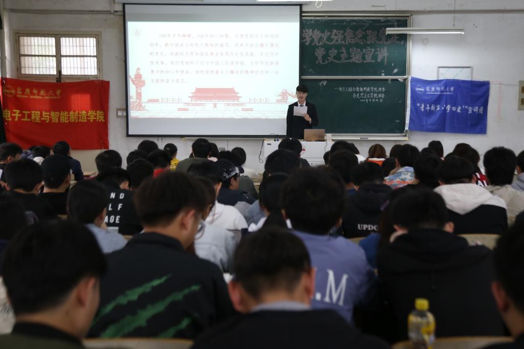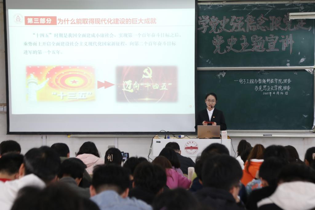 “这是我第一次上台宣讲,很紧张,但在宣讲的过程中,我也进一步加深了对党史的理解。”宣讲人之一的思想政治教育专业2019(4)班的郑亚鹏称,从写稿、制作PPT再到背稿,前前后后准备了一个多星期。“党史学习要发挥个人的主观能动性,做到常态化自主学习,希望此次宣讲能够激发大家学习党史的兴趣。”他说。