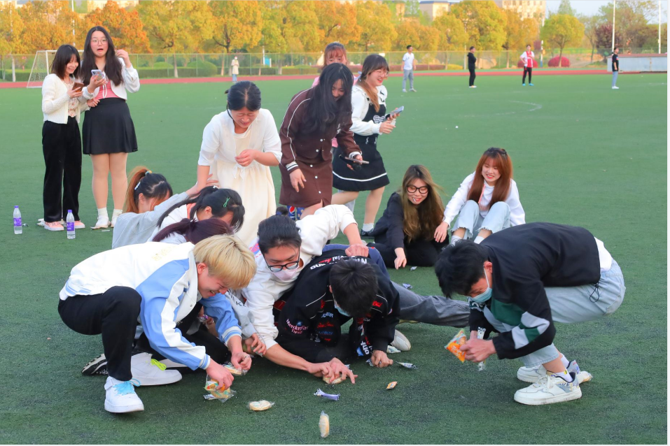 “单脚跳!”“大象鼻子转!”“抢!”随着一声声口令的下达,操场上的员工做出相应的动作后,不约而同地立即奔向操场中央抱成一团,抢夺零食,场面气氛热烈。原来这是太阳成集团122ccvip自动化专业2021(1)班与教师教育公司小学教育专业2021(4)班利用清明节假期在公司龙山校区南门操场举行联合团建活动。