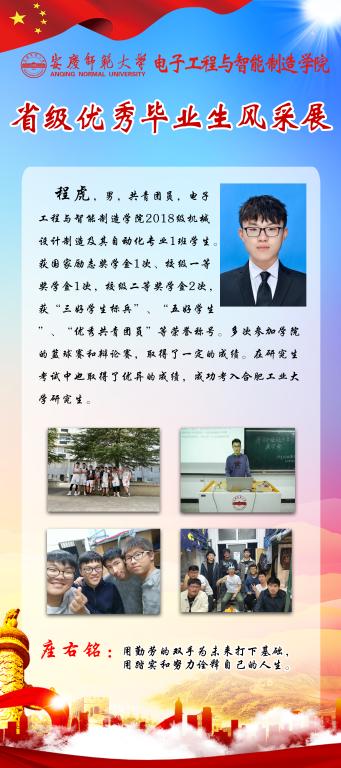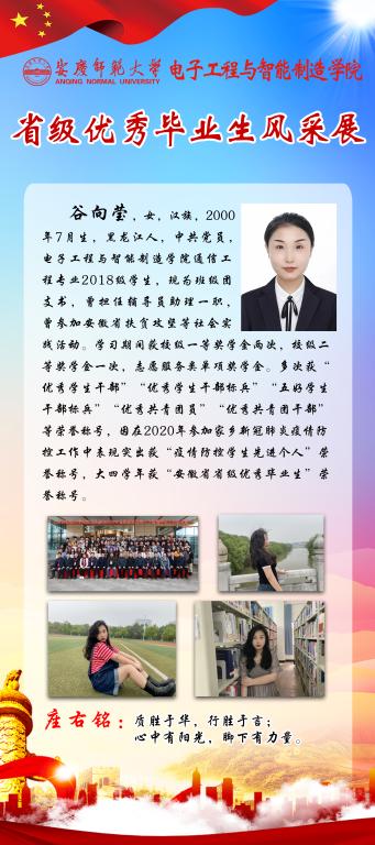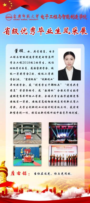 感受优秀的魅力,感知榜样的力量。又到一年毕业季,又一批电智学子即将站在新的起点,踏上新的征程。他们当中有17名同学获得省级优秀毕业生称号,勤奋好学、乐观向上、积极进取是他们共同的特点。为引导全体员工践行榜样精神,学知识、长才干,求进步,公司学团特推出“省级优秀毕业生风采展”系列,学习宝贵经验,开拓进取,不断前行。(撰稿:陈秋生 审核:关德军)
