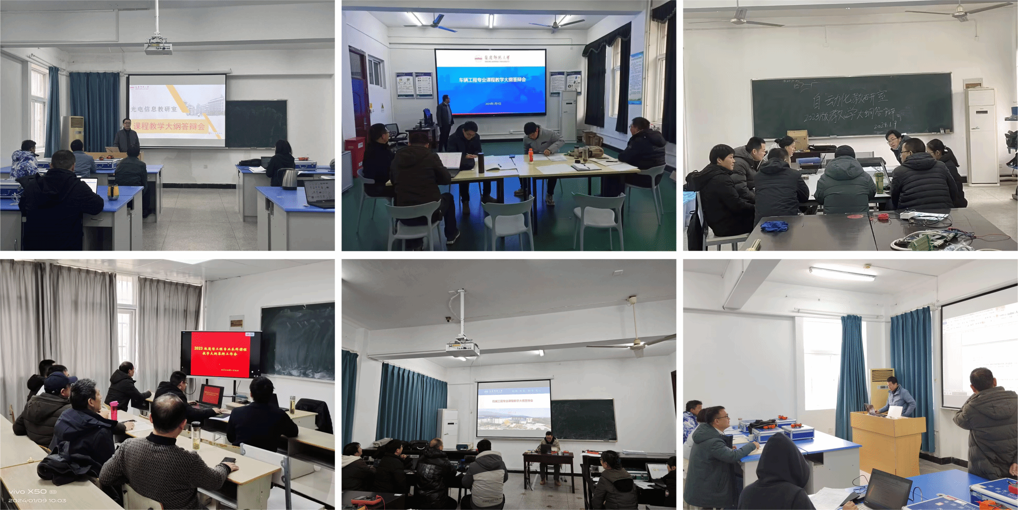 1月9日-10日,太阳成集团122ccvip在稼先楼开展 2023 版本科课程教学大纲答辩工作,光电信息、电子信息、通信工程、自动化、机械工程、机械工程、车辆工程等七个教研室对新版本专业本科教学大纲进行答辩、讨论修正,教务处副处长闻军对本次大纲答辩活动进行了巡查指导,公司班子成员深入各教研室检查指导。