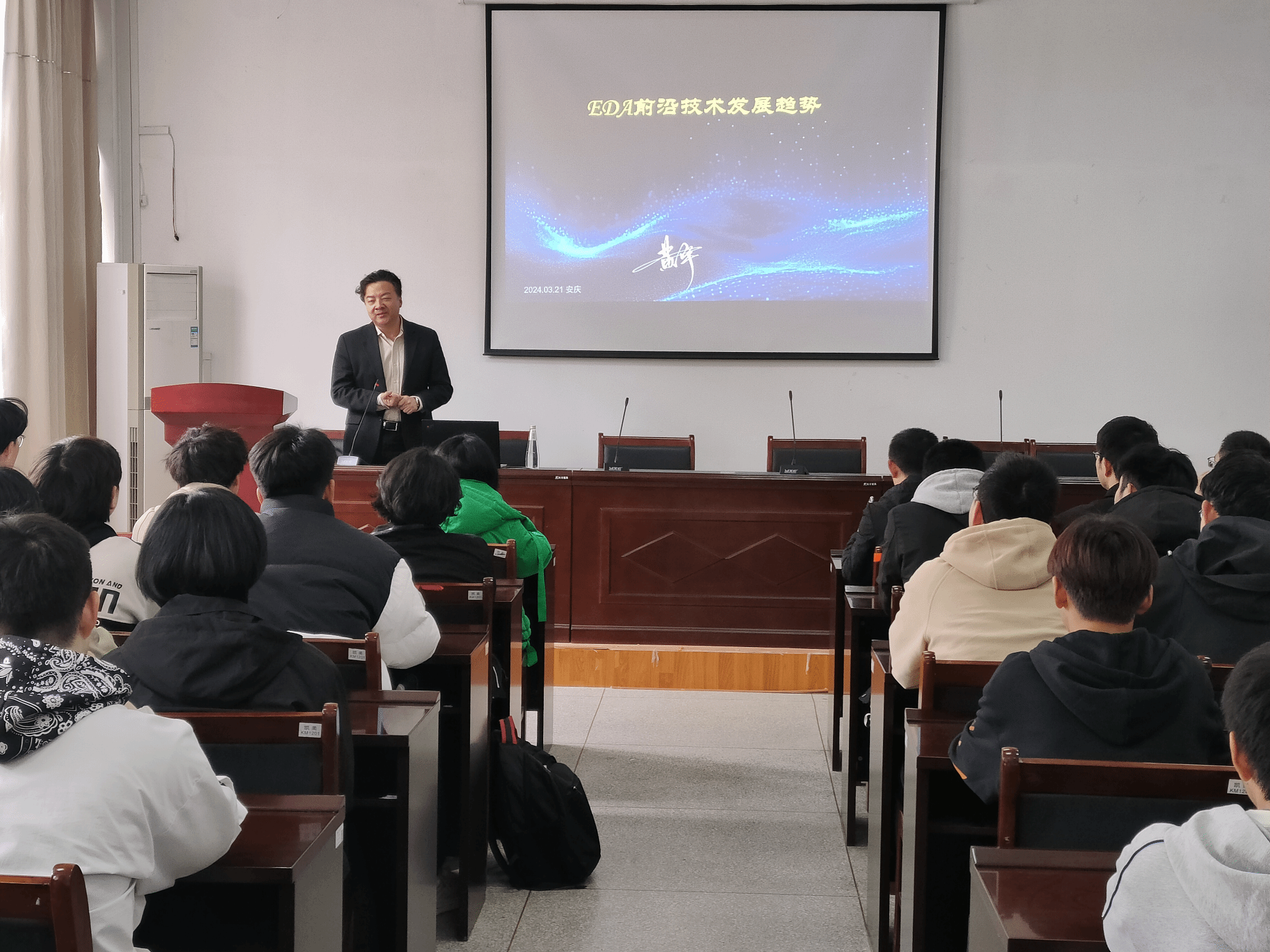 3月21日,华为半导体科学家、海思EDA首席架构师及EDA实验室主任黄宇博士应邀作了题为“EDA前沿技术发展趋势”学术报告。学术报告由公司副经理詹文法教授主持,公司相关教师、本科生和研究生代表现场参加了本次讲座。
