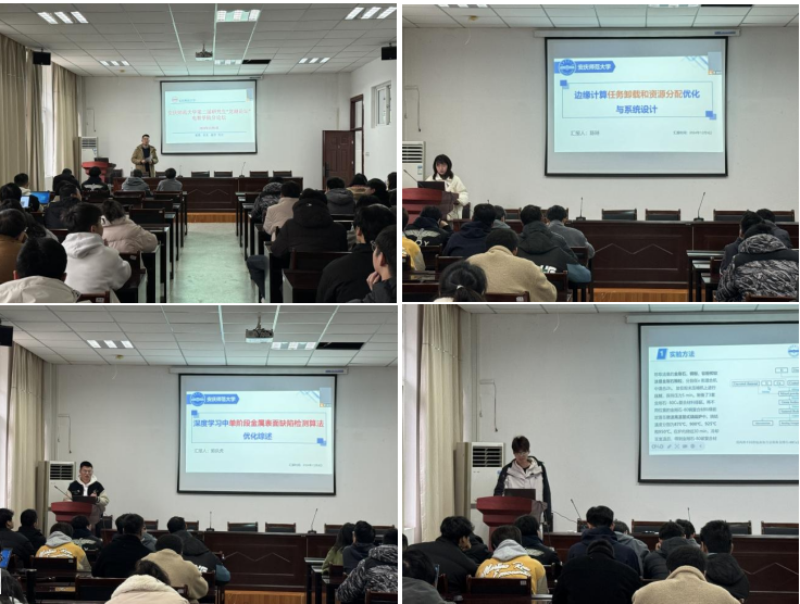 论坛中,五位研究生围绕论坛主题,分享了各自的最新研究成果与思考。陈琳同学以《面向工业互联网的边缘计算任务卸载和资源管理优化》为题,提出了通过优化边缘计算资源配置来提升工业互联网效率的创新方法;涂亮同学在《基于数据驱动和深度特征的锂离子电池健康状态估计方法》中,展示了结合深度学习技术进行电池健康状态预测的前沿研究;凌雅棋同学的《混合量子-经典神经网络及其图像分类应用研究》深入探讨了量子计算与人工智能结合的可能性,为交叉学科的发展提供了新视角;郭庆虎同学系统梳理了金属表面缺陷检测技术的最新进展,并在《深度学习中单阶段金属表面缺陷检测算法优化综述》中提出了新的优化建议;王学响同学则通过《不同钛添加方法对金刚石/铜复合材料性能的影响》研究,探索了复合材料性能提升的新路径。