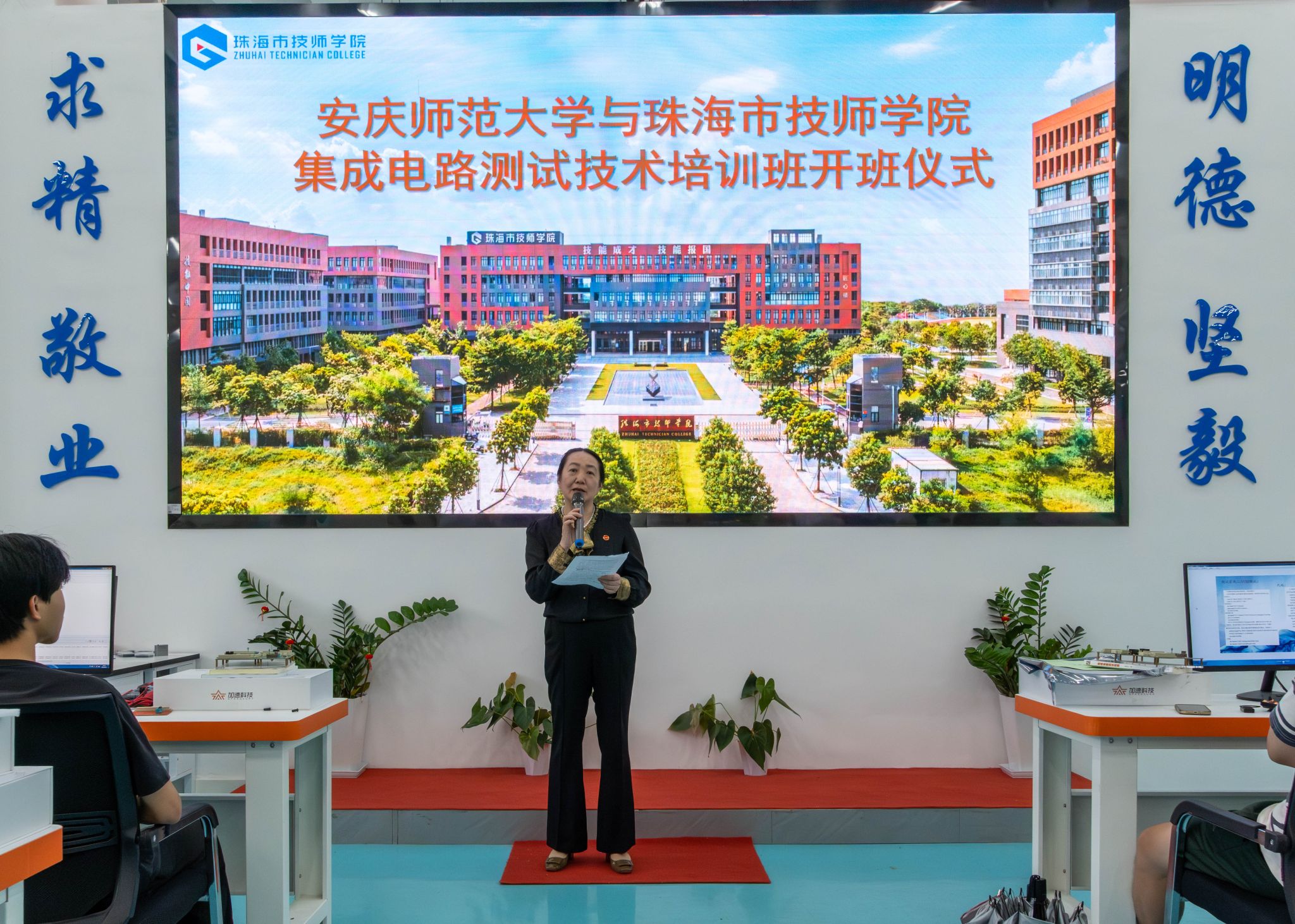 在广东省产业就业培训基地(珠海市),吴琼出席了公司承办的集成电路测试培训班开班式。吴琼感谢广东省产业就业培训基地(珠海市)的信任,她表示,通过该项目的合作,加深了太阳成集团122ccvip与广东省产业就业培训基地(珠海市)的联系,扩大了两地的社会影响力,提高了两地人才培养质量,实现了双方共赢。