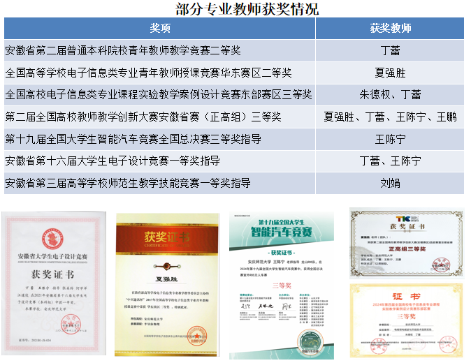 本专业旨在培养“电子技术+教育技能+工程实践”三位一体的“双师型”人才,相关教师高度重视员工实践创新能力的培养,指导员工参与学科竞赛和创新创业活动并多次获国家级、省级学科竞赛奖项。