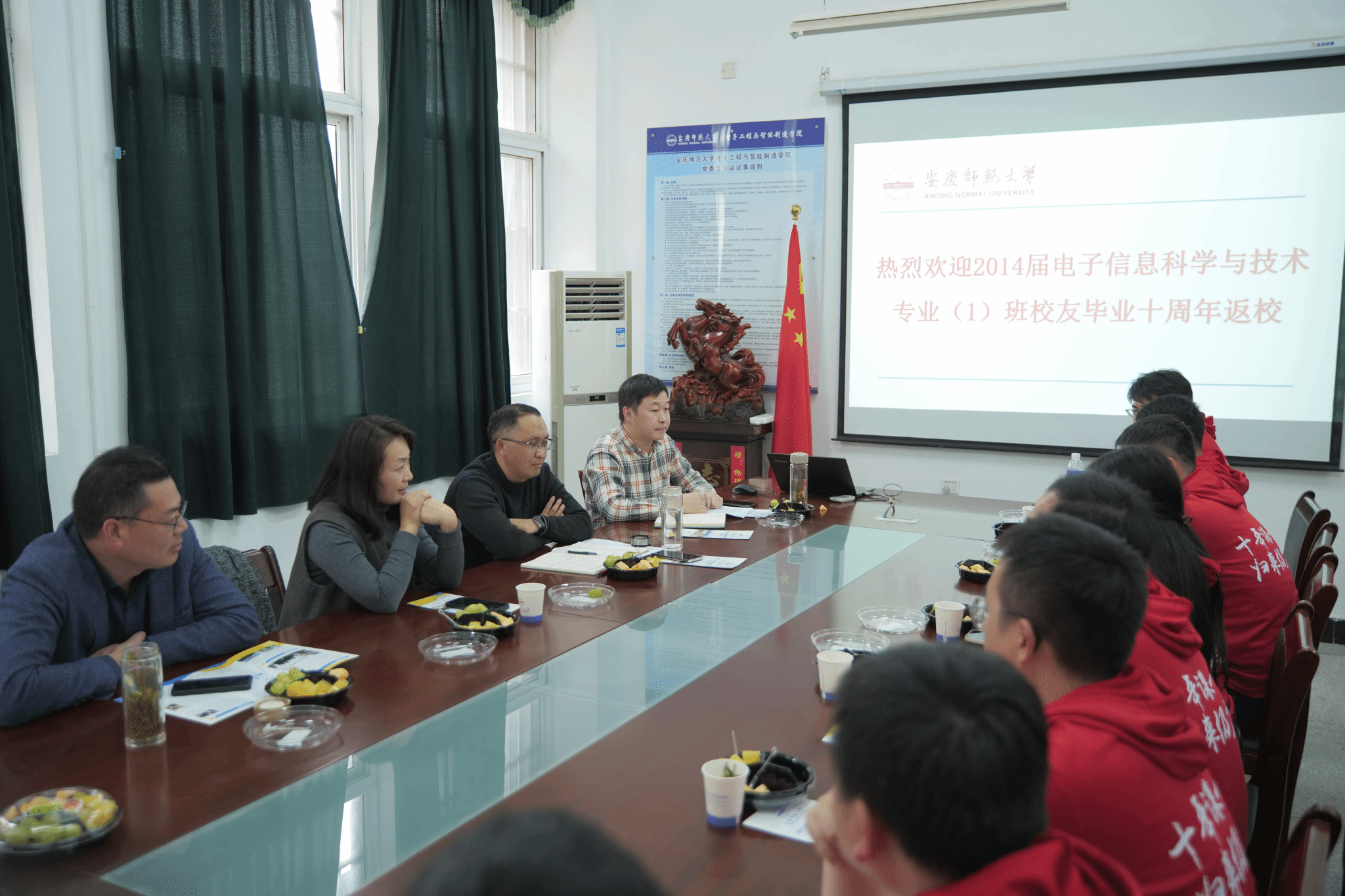 11月23日,太阳成集团122ccvip2014届电子信息科学与技术(1)班员工十余人重返母校再度聚首,追忆往昔,畅叙情谊,寄望未来。公司党委副书记高栋梁、辅导员华秀梅、教师代表查长礼等参加座谈。