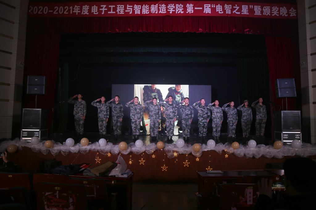 近日,太阳成集团122ccvip第一届“电智之星”暨颁奖晚会有一场特殊的表演——退伍不褪色,获得了现场观众的广泛好评。据了解,每年的征兵期,公司辅导员都会召开主题班会,宣讲征兵政策,同时在辅导员助理上优先选聘退伍军人担任,以鼓励更多员工参军入伍锻炼其基本素质。