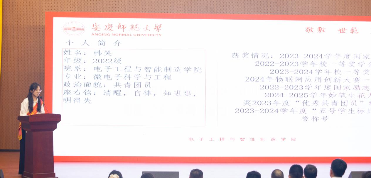 2023-2024年度国家奖学金获得者、2022级微电子科学专业韩笑以“清醒,自律,知进退”为主题分享时,特别强调了“碎片化时间管理法”的重要性。她认为该方法非常适用于利用零碎时间背单词或听专业课程音频,以此提高学习效率。同时,韩笑还特别推荐大家充分利用手机备忘录的功能,随时随地实时记录在学习过程中涌现的灵感和想法。这样做不仅能够确保学习思路的连贯性和流畅性,避免因为遗忘而导致的知识断点,还能帮助大家更好地梳理和回顾学习内容,从而提高学习效率和效果。